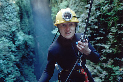 100 metres abseiling down the massive shaft.